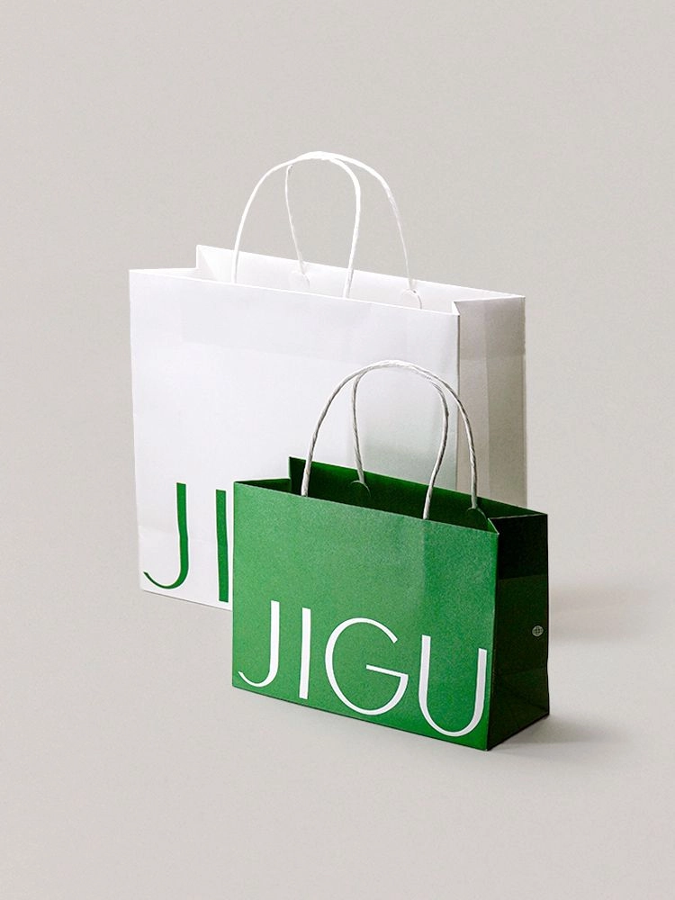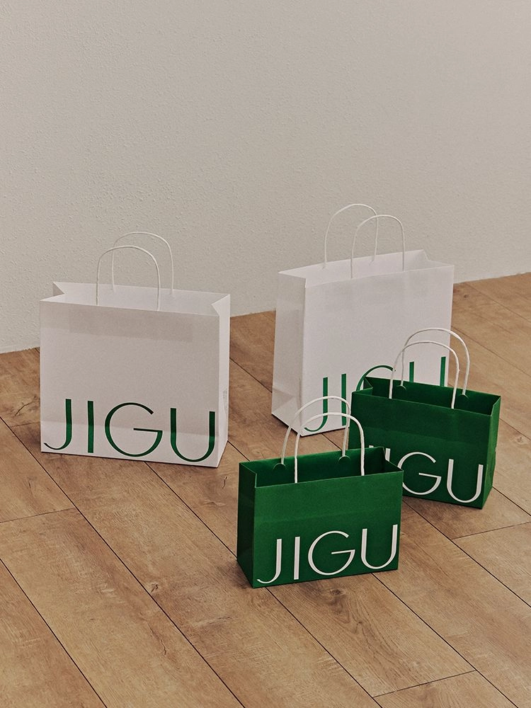 JIGU의 브랜드 컬러를 담은 쇼핑백입니다.