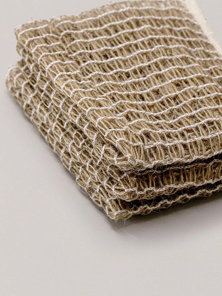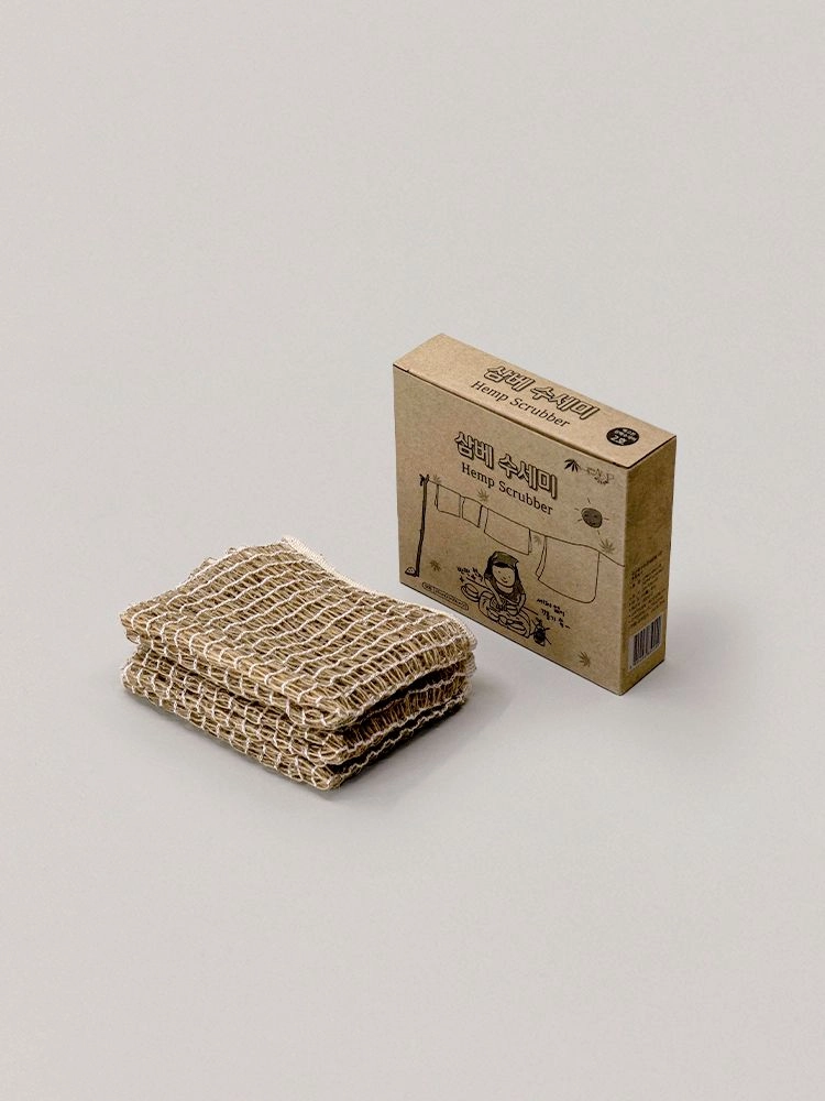 가벼운 설거지는 세제 없이도 말끔하게 가능한 삼베 소재의 수세미입니다.